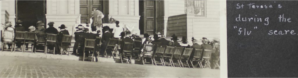 In this photograph, mass is celebrated outdoors on the steps of St. Teresa’s Church on 19th and Tennessee streets. The church moved to 19th and Connecticut streets in 1924.