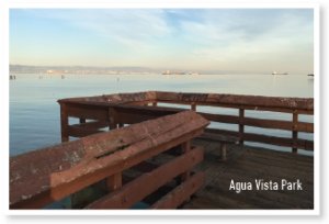 I know virtually nothing about fishing. My disappointment at the Agua Vista pier shouldn’t be regarded as a trustworthy sign that fish can’t be found in the area. Indeed, I witnessed firsthand the easy success of a nearby waterfowl that, by dipping its beak beneath the surface, snatched prey that might otherwise have gravitated toward my inexpertly cast lure. Even so, it was a pleasant way to pass an uneventful sunny day. A few curious walkers strayed from the Bay Trail to chat with me as they admired my obviously futile efforts. I’ll bet you can do better. Fortunately, you don’t need a license to fish from California’s public fishing piers. Don’t wait too long, though: with the new Warriors stadium about to go up a few steps away, Agua Vista Park’s future shape isn’t clear. There have been rumors of a potential new ferry terminal, activity which might scare the sturgeon away.