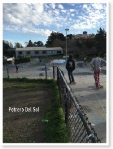 Feel free to let us know. In any case, the first of two Mishpot destinations is the skate park at Potrero Del Sol, on Potrero Avenue, below 25th Street, an expansive green space that boasts a community garden, outdoor performance space, and children’s playground. Despite its convenient back entrance on San Bruno Avenue, Potrero Del Sol seems to belong far more to the Mission than it does to Potrero, owing in large part to the longstanding closure of the 25th Street overpass, the Hill’s miniature version of President Trump’s border wall.