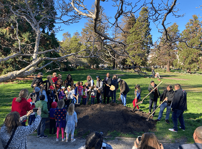 Earlier this year the long-awaited renovation of the 80,000 square foot – 1.84 acre – Esprit Park in Dogpatch commenced. Ceremonial shovels were wielded by local dignitaries, residents, and park users, including District 10 Supervisor Shamann Walton and students at Red Bridge, a kindergarten to eighth grade independent school located on Third Street.