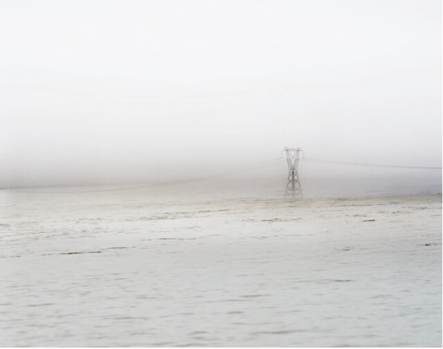 Power Lines, Columbia River, Washington, 2015, is the most obvious example of West Rivers’s technique. One exposure shows the snow-like expanse of water; a second adds a steel tower and a stretch of power lines to the composition. The artist’s trickery might be easy to spot, but that doesn’t lessen the visual impact. The disturbance of process is meant to emphasize technological disruptions of landscape, a pertinent environmental commentary, if sometimes a bit milquetoast in its delivery.