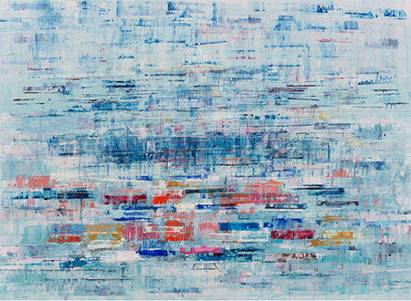 “I look out and have a view of the Bay. The water view will creep into some of the works. The big sky, the water. Kind of industrial at the same time. It helps to inform the paintings,” said Daniel Phill, who has worked in his Noonan Building studio for 16 years. Phill described his work as abstract botanical, abstract floral landscapes, with an emphasis on expressionism, alluding to flowers and vegetation. His pieces are on display this month at the San Francisco Museum of Modern Art Artist Gallery at Fort Mason, part of a benefit sale.
