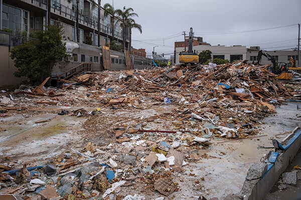 Top: Construction of an eleven-story 425 unit development at 16th and De Haro streets is underway, despite neighborhood concerns. Over the years the triangular lot at the site housed Rustico, The Center for the Book, El Sur, Gitan, Sally’s, Bunn Mike, My Good Pie, and Roadster, among others. Photo: Ed Rudolph