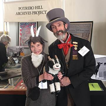 Linenthal appreciated Johnston’s sense of humor. The two participated in San Francisco History Days at the Old Mint; an annual event that offers the public a chance to explore the City’s past within the walls of the historic building, bringing together history groups from throughout the City. Johnston dressed as a goat for history night because the animal is a symbol for Potrero Hill.