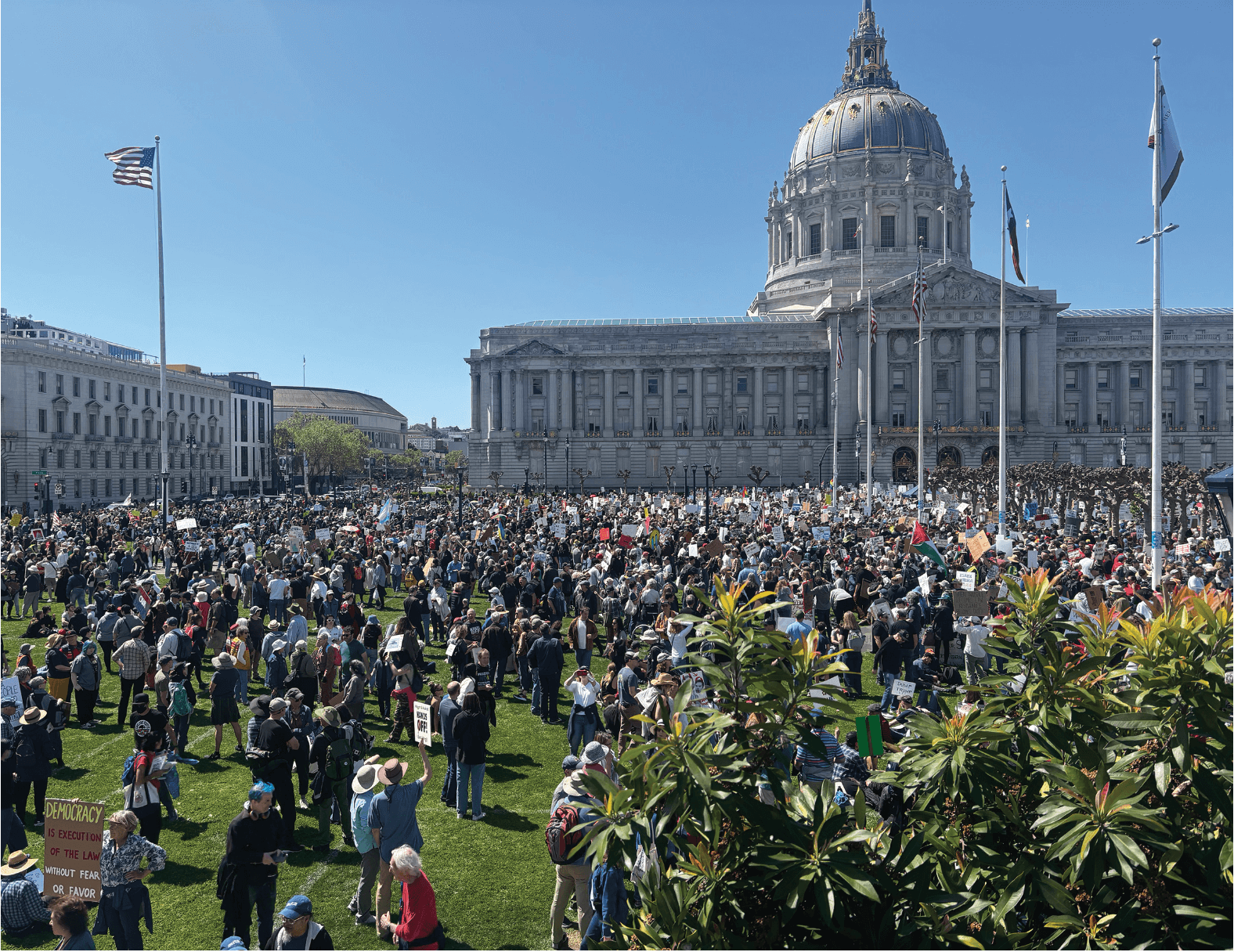 The Trump Administration’s attacks on the federal government, immigrants, the national economy, and much else ratcheted up last month. In response, more than a half-million people gathered in St. Augustine, Florida, Salt Lake City, San Francisco, and throughout the country to protest harm to national parks, small businesses, and public education, amongst other causes. Photo: Potrero View Staff