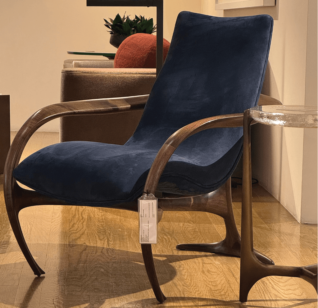 Showrooms are filled with colorful fabrics, luxury furniture and high-end finishings: tile, lighting fixtures, and cabinets. A walnut Vladimir Kagan “Gigi Chair” in the Holly Hunt showroom is on offer for $27,000. The Sloan Miyasato showroom featured a stunning chandelier made of blown-glass leaves in the “Foglia” collection of Healdsburg-based Studio Bel Vetro.