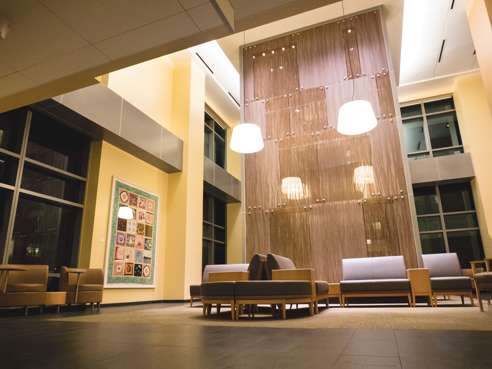 UCSF_interiorJust as the huge lettering on the glass tower at the end of 16th Street had promised for months, the University of California San Francisco-Mission Bay’s newest Medical Center opened to the public on February 1, 2015.